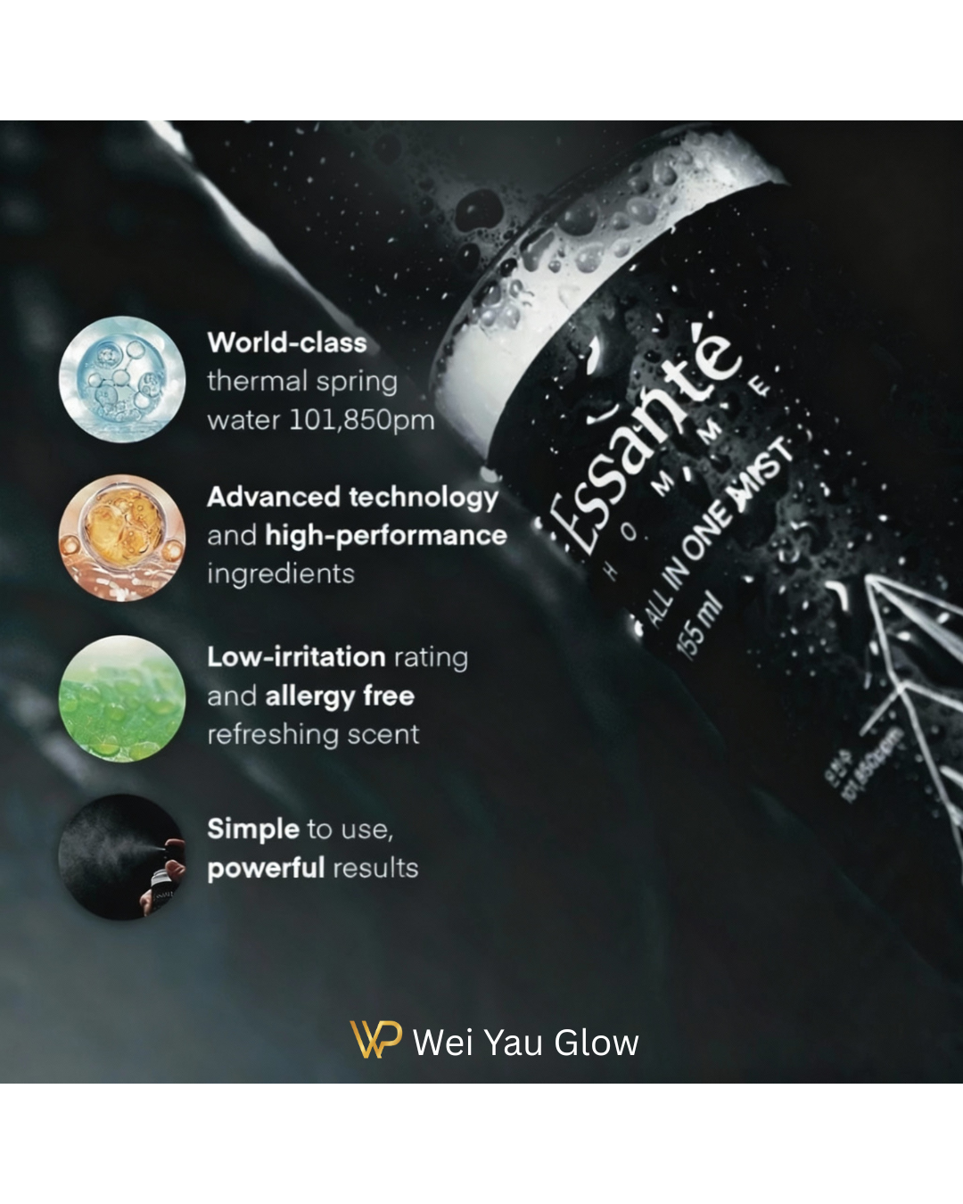 Discover Essanté Homme All-in-One Mist, the premium Korean men’s skincare spray that replaces three steps in one sleek bottle. Formulated with 101,850 ppm volcanic hot-spring water, Niacinamide, Adenosine, and peptide-ceramide complex for deep hydration, barrier repair and anti-ageing.